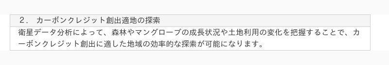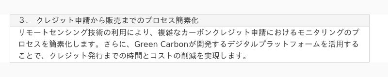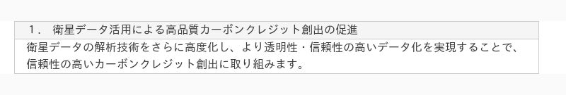 事業内容 :カーボンクレジット創出販売事業、農業関連事業、環境関連事業、その他、関連する事業及びESGコンサルティング事業