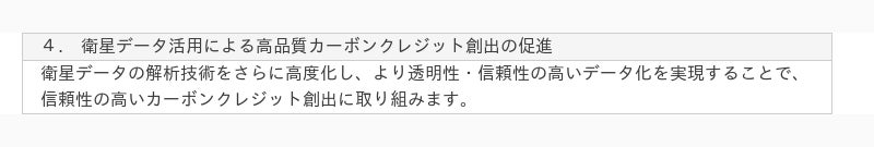 本イベントの登壇では、衛星データを活用したGreen Carbonの取り組みとして、以下の四点を発表しました。