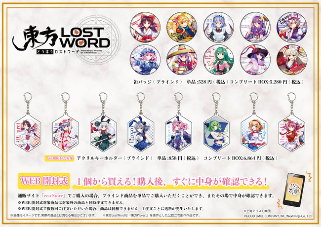 『東方LostWord』オンラインイラストギャラリー開催決定!缶バッジやアクリルキーホルダーなど新作グッズも登場