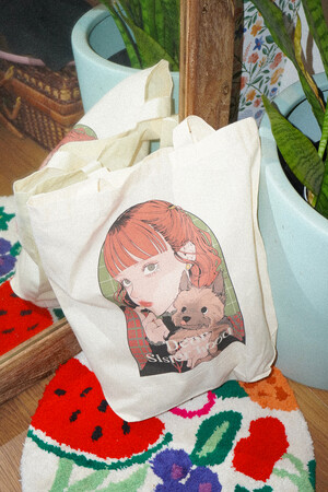 この度のコラボアイテムは、DSHのためだけに、アーティストMAISONdesのジャケットや、EYESCREAMのカバーイラストをはじめとして多くの企業やクリエイターのイラストを手掛ける大人気 NAKAKI PANTZさんが書き下ろしたオリジナルグラフィックを用いております。鮮やかな色遣いで力強く描かれたディレクター瀬戸さんと、愛犬「まゆげ」のイラストを使った4アイテムを展開いたします。