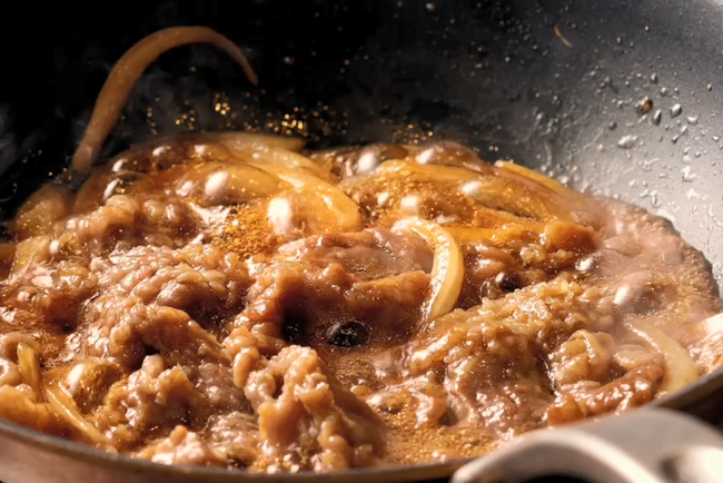 【ポイント1.】焼きたての“牛肉”と“たまねぎ”