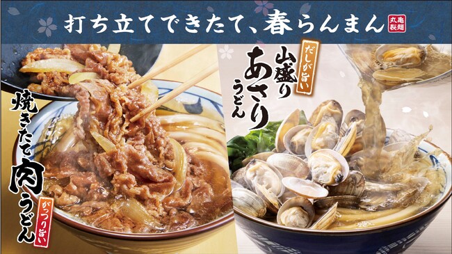 株式会社丸亀製麺(本社:東京都渋谷区、代表取締役社長:山口 寛)が展開する、食の感動体験を追求し、手づくり・できたてにこだわる讃岐うどん専門店「丸亀製麺」は、春限定の定番人気『山盛りあさりうどん』を2023年3月7日(火)〜4月下旬まで全国の丸亀製麺にて期間限定で販売いたします。また新しいことが多い春、元気をつけたい時には、がっつりと食べ応えのある『焼きたて肉うどん』もおすすめです。