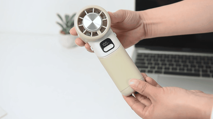 回転式の折りたたみデザインを採用しており、手に持つだけでなく、デスクに置いても快適に使えます。角度調整も自由自在で、顔や首元、手元など、涼しくしたい場所にピンポイントで風を届けます。ユニークな折りたたみ構造は、使うたびにちょっとした遊び心と癒しを与えてくれます。