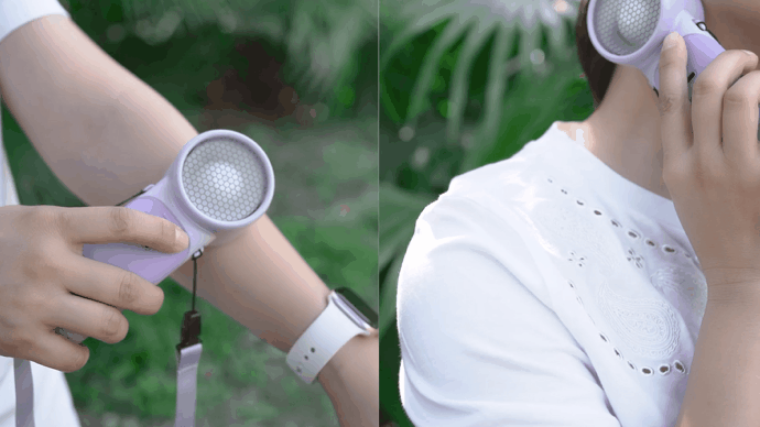 3.3WAY仕様!手持ち・首掛け・卓上の1台3役。涼しさを持ち運べる。