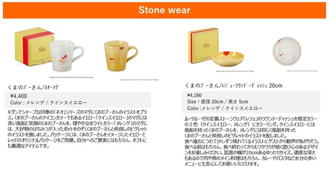 今回のコレクションにはくまのプーさんのほか、ピグレットやティガー、イーヨーなど愉快な森の仲間たちを描いたお鍋やストーンウェア(食器)を豊富にラインナップ。くまのプーさんを思わせる温もりのあるイエローをはじめ落ち着いたトーンのカラーに、手書き風のイラストを施した大人可愛いデザインでくまのプーさんたちの暮らす優しい世界を表現しました。ストーンウェアには、くまのプーさんや仲間たちのイラストを描いたオリジナルパッケージをご用意。自分へのご褒美にはもちろん、くまのプーさん好きのお友達へのギフト、出産祝いにもおすすめのコレクションです。