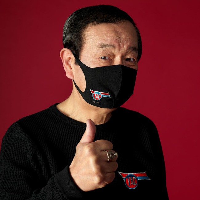 TACのロゴを刺繍したやわらかなマスクは普段使いに最適。
