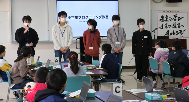 国が推進するGIGAスクール構想(※1)について、久留米市立学校(小学校44校、中学校17校、特別支援学校1校、高等学校2校)においても、令和2年度中にコンピュータ端末と校内通信ネットワークの整備が終了し、久留米市内児童生徒へのICT教育の機運が高まっています。令和3年4月から、整備したICT環境の活用をスタートし、すべての子どもたちの可能性を引き出す、個別最適な学びと、協働的な学びの実現を目指す久留米市の施策に対して、本校が久留米市から委託を受け、小学生プログラミング教室を開講するに至りました。