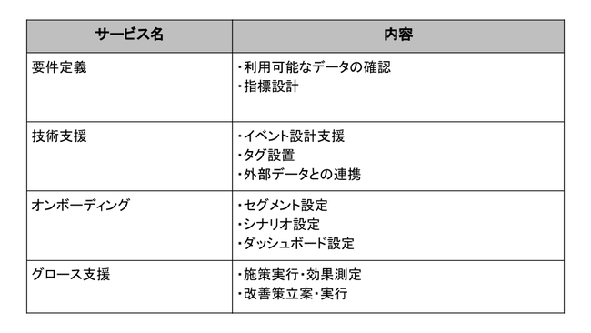 今回のパートナー契約により、DearOneは日本で唯一※、MoEngageの導入から運用に関する以下のサービスの提供が可能となりました。