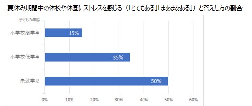 さらに、子どもの年齢が小さい方がよりママのストレスが強く、夏休み中の負担が大きいことが分かりました。