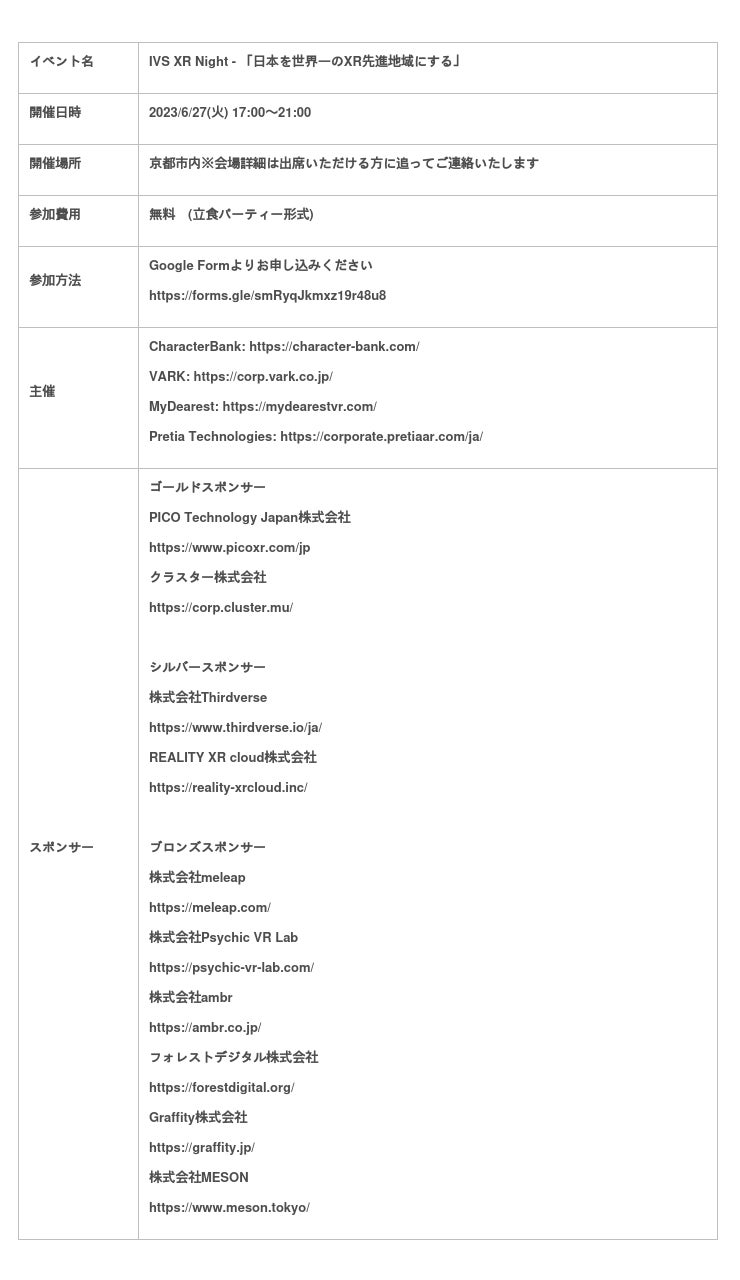 「日本を世界一のXR先進地域にする」という想いを掲げて6/27に京都にて開催される、