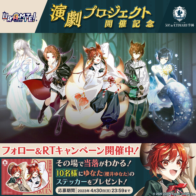 RTキャンペーンでは、合計50名様に『5O! in ETIMARU学園』のステッカーをプレゼントいたします。
