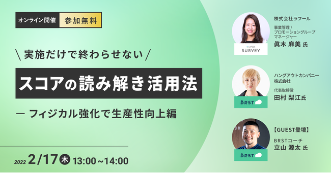 ラフール、『実施だけで終わらせない組織改善サーベイのスコア読み解き活用法<フィジカル強化で生産性向上編>』をテーマにハングアウトカンパニー株式会社と共催セミナーを開催!
