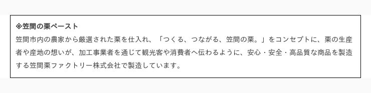 笠間の栗は、栗の栽培面積・出荷量ともに全国第1位を誇る茨城県の一大産地である笠間市で収穫されたブランド栗です。笠間産の栗とグラニュー糖のみから作られた、栗本来の香りや味わいを大切にした糖度30度の「笠間の栗ペースト(※)」を使用した栗クリームをこの度開発しました。しっとり風味豊かなパン生地に、栗クリームと八天堂定番のカスタードを2層仕立てで入れ、笠間の栗を引き立てる味わいに仕上げました。栗本来の香りや味わいを感じられる、秋におすすめの逸品です。