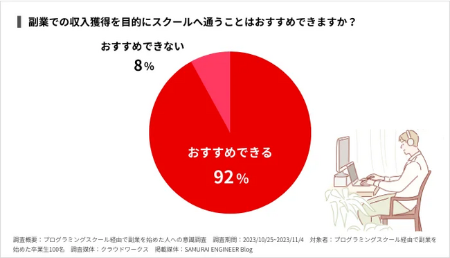 92%が副業目的でスクールに通うことを「おすすめできる」と回答