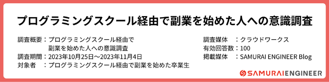 調査概要 :プログラミングスクール経由で副業を始めた人への意識調査