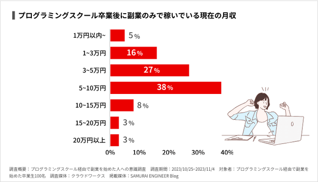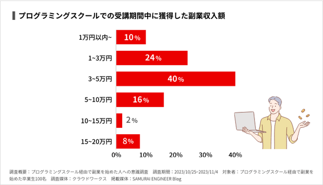 【調査レポート】プログラミングスクール卒業後の副業収入は「月収5~10万円」が最多