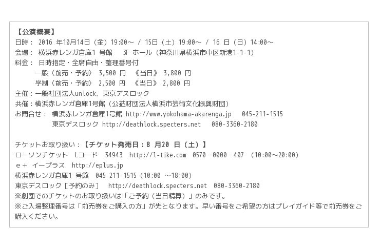 2016年10月、横浜赤レンガ倉庫1号館での初公演が決定!