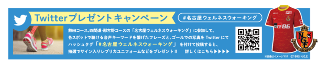 「熱田コース」「四間道・那古野コース」の『名古屋ウェルネスウォーキング』に参加して、 各スポットで聴ける音声キーワードを繋げたフレーズと、ゴールでの写真を Twitter にて ハッシュタグ「#名古屋ウェルネスウォーキング」 を付けて投稿すると、 抽選でサイン入りレプリカユニフォームなどをプレゼント!