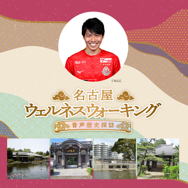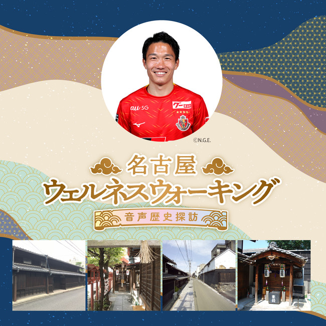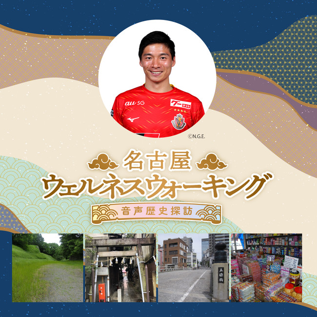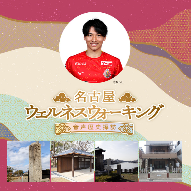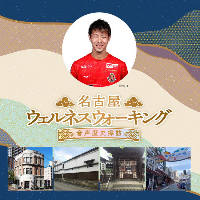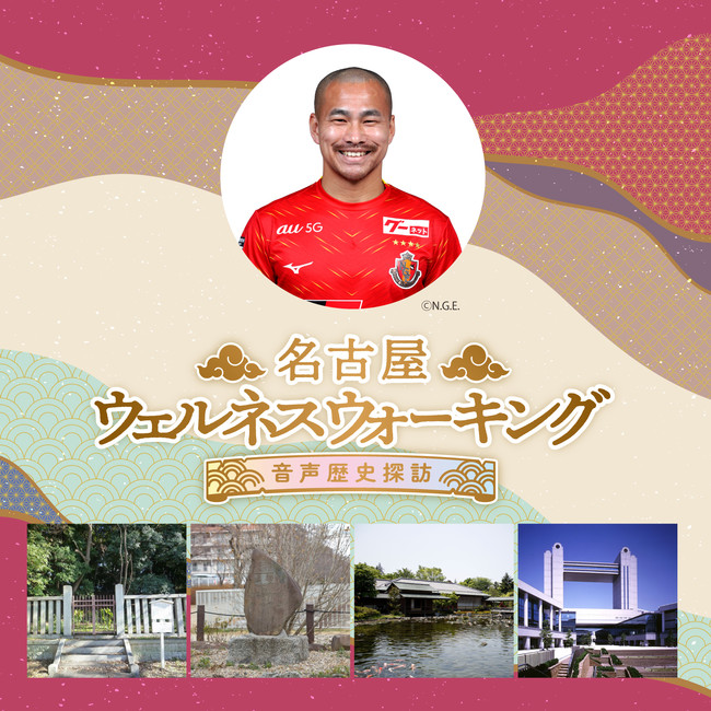 「このたびSARFの音声ガイドを務めさせていただきます名古屋グランパス稲垣祥です。普段は皆さんにプレーを観て楽しんでいただいていますが、今回は声ということで収録時は少し緊張しました。6選手がそれぞれのコースで観光スポットを紹介していますので、ぜひ楽しみながら『名古屋ウェルネスウォーキング』に参加してください!」