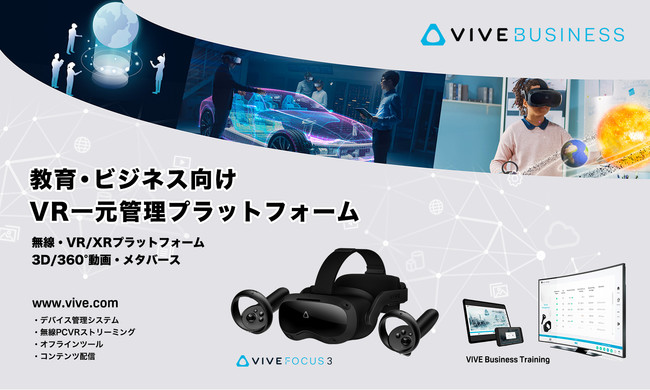 HTC VIVE(R)は、企業や消費者に真のVR体験を届ける最高のVRプラットフォームとエコシステムです。VIVEエコシステムは、プレミアムVRハードウェア、ソフトウェア、コンテンツを中心に構築されています。VIVEビジネスには、クラス最高のXRハードウェア、VIVEPORTプラットフォーム、アプリストアが含まれます。ビジネス顧客向けのVIVEエンタープライズソリューション、ビジネスアクセラレータであるVIVE X、VIVE STUDIOS、エンターテイメント、ゲーム、エンタープライズコンテンツスタジオ、そして文化的なイニシアティブであるVIVE ARTSなどがあります。VIVEの詳細については、https://www.vive.com/jp/ をご覧ください。