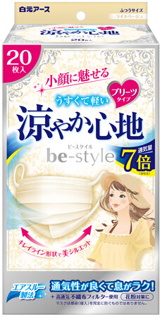 白元アース株式会社(本社:東京都 台東区、社長:吉村一人)は、ムレにくく軽やかなつけ心地のマスク『ビースタイル プリーツタイプ 涼やか心地 ライトベージュ 20枚入』を3月1日より限定発売いたします。