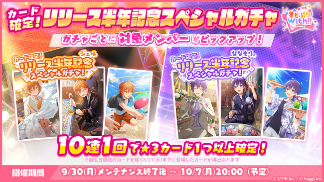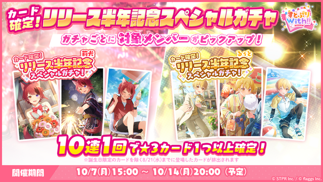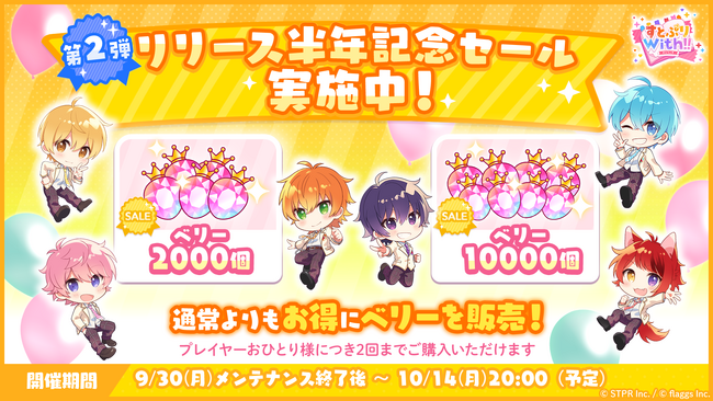 株式会社STPR(本社:東京都渋谷区、代表取締役:柏原 真人、以下STPR)と株式会社flaggs(フラッグス)(本社:東京都品川区、代表取締役CEO:吉江 直人)は、2.5次元アイドルグループ「すとぷり」の公式ゲームアプリ「すとぷりWith!!(通称:すとうぃず)」のリリース半年を記念したキャンペーンの開催についてお知らせいたします。