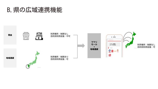 西松屋様、赤ちゃん本舗様、オンライン両親学級など、自自治体にない事業者を加盟店誘致することで、出産・子育て応援ギフトの利用可能店舗を増やすことが可能です。また、ECモールや電子クーポン等電子的方法により県広域連携が可能です。