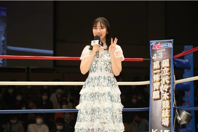 大会前にリングでの挨拶に立つと「リングの上は初めてなので、選手のみなさんがこの景色を見ながら戦ってると思うと高揚感があります」と興奮気味に話しました。