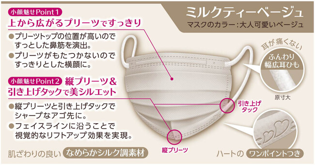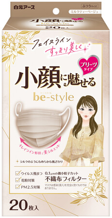そこで今回、マスク姿をすっきりキレイに見せたいと思う皆様にぴったりのマスクで、“小顔に見える”“フェイスラインがすっきり見える”と好評をいただいている「ビースタイル プリーツタイプ」から、たっぷり使える『ミルクティーベージュ20枚入』の限定企画品を新発売いたします。