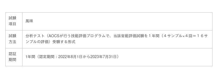 ■AOCSオリーブオイル官能評価に関する技能評価試験 試験項目、試験方法、認証期間