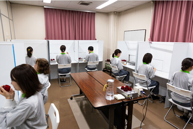 風味を守る業務の中核を担うのが、全国の拠点に所属する約30名のオリーブオイル官能評価チームの鑑定士たちです。IOCが規定する手法に準拠した当社独自の識別能力試験に合格した従業員はオリーブオイル官能評価チームの鑑定士となり、定期的な訓練やモニタリングを受け、鑑定能力を維持・向上しています。さらにその能力を国際水準に合わせるため、今回認定を受けたAOCSの「オリーブオイル官能評価に関する技能評価試験」を毎年受験しています。