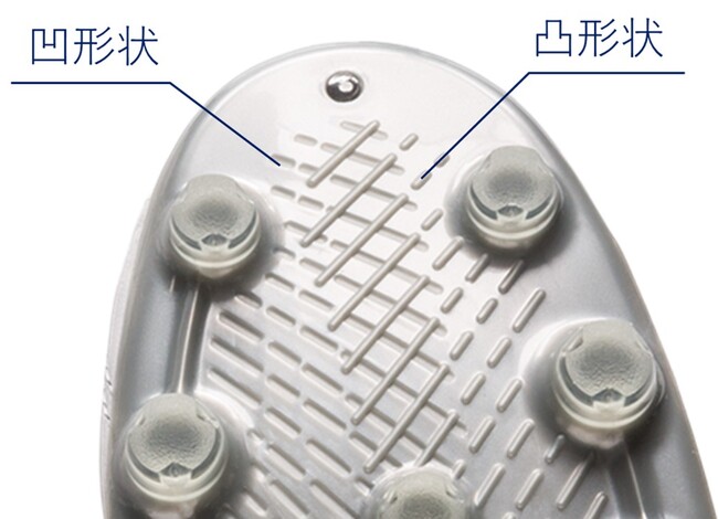 内側に凹形状の意匠を入れることで剛性を弱め、外側には凸形状の意匠を入れることで剛性を強めています。内側と外側の強度のバランスにより内ねじれを許容しつつ、外ねじれを抑える新意匠を採用しています。