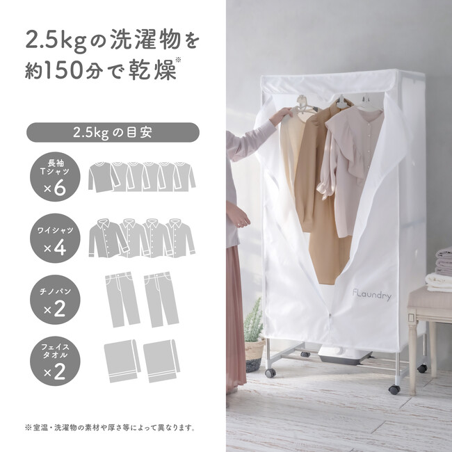 1. 約150分で洗濯物2.5kgをスピード乾燥