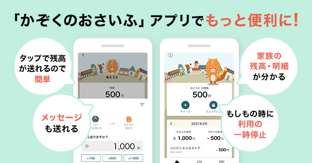 「かぞくのおさいふ」デビュープラン | 新規入会+チャージ+アプリログインで、1,000円分のプリペイドチャージをもれなくプレゼント!