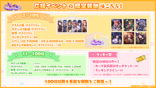 応援イベントのランキングの順位に応じて特別な報酬を入手することができます。