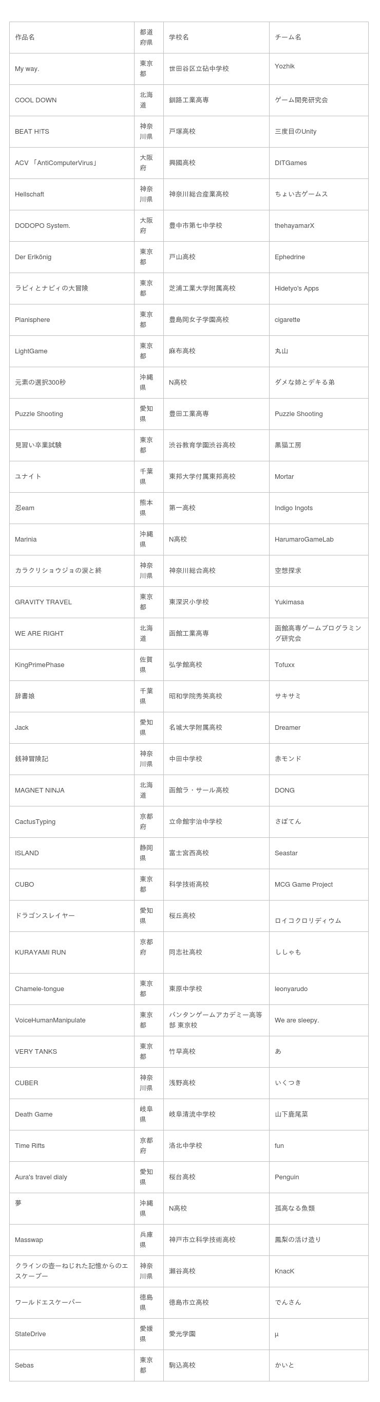 高校生・高専生(3年生以下)の学生を対象としたUnityおよびプログラミング技術習得の奨励、才能の発掘を目的として行われるゲーム開発の全国大会です。