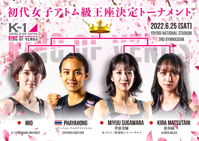 「K-1 RING OF VENUS」6.25(土)代々木 対戦カード決定! 初代女子アトム級王座決定トーナメント、日本vs世界・3対3を開催