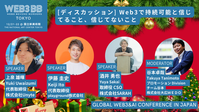 株式会社SARAH(東京都千代田区、代表取締役 高橋洋太)は、2023年12月21日〜22日に国立新美術館(東京都港区六本木)で開催される「WEB3BB TOKYO WIMTER 2023」にて、取締役CSO/Co-Founderの酒井 勇也が登壇することを発表いたします。