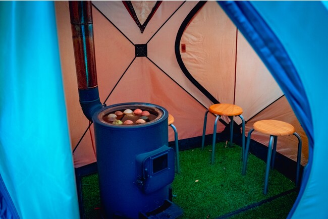 近頃サウナーの間で話題の「テントサウナ」が登場!森林浴とサウナで整う心地よさは、キャンプならではのお楽しみ。※写真は前回の様子
