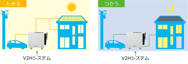 <V2Hシステム(太陽光連携)のイメージ図>