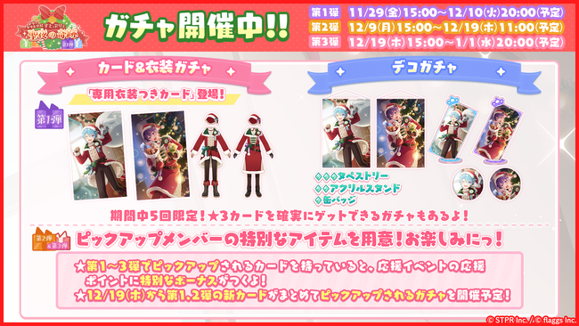 ※今回登場する★3カードは、12月19日(木) 15:00より開催を予定している「メリークリスマス!すとぷりと聖夜の奇跡 復刻カード&衣装ガチャ」にて再度ピックアップを行います