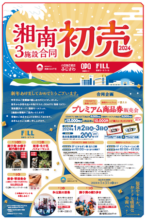 「ODAKYU 湘南 GATE」(「小田急百貨店ふじさわ」含む)、「湘南藤沢オーパ」、「湘南モールフィル」は、3施設合同で初売りを開催します。(「ODAKYU 湘南 GATE」は2024年1月2日(火)から、「湘南藤沢オーパ」「湘南モールフィル」は2024年1月1日(月・祝)から開催)