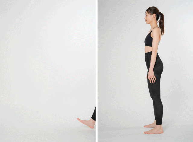 このスパッツの最大の特徴は、独自のアクティブラインをスパッツに配置し、ウォーキングや階段などの日常生活における動作をトレーニングに置き換え、前太ももの筋肉の活動をサポートしてくれることです。