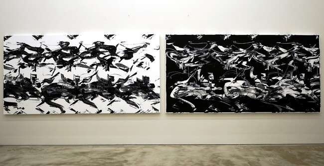 1980年生まれの彫刻家、小畑多丘は自身もブレイクダンサーだというルーツを元に、B-BOYにインスピレーションを受けた一連の人体彫刻作品で知られております。近年は彫刻作品のみならず、塑像と彫像の関係性をもとにしたキャンバス作品を発表しており、絵具を厚く塗り敷いたキャンバス上から絵具を「削り」とり、その質量をそのまま移動させて「盛り」、ダンスにも通ずるリズミカルな身体の動きによる作品へのアプローチを展開しています。1999年にヒップホップチーム「UNITYSELECTIONS」を、2007年に「HIPHOP 戦隊BBOYGER」を結成。ブレイクダンスの経験を生かしてその技術や躍動を表現に取り入れ、台座のない木彫による人体と?服の関係性や、「B-BOY」の彫刻を端緒に生まれる空間の変質を追求することで、緊張感と迫力にあふれる作品を展開している。
