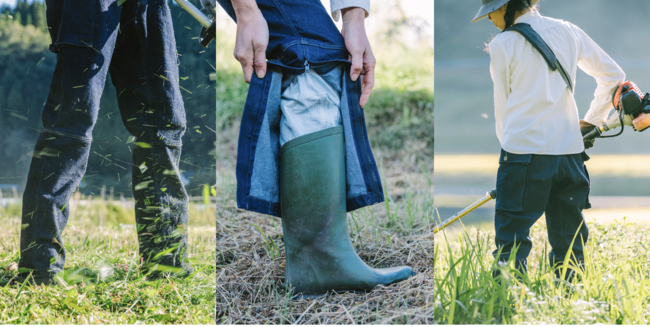 そしてこの度、竹田被服はファクトリーブランド製品の第1弾として、「草刈りパンツ」を販売いたします。このパンツは草刈りはもちろんですが、暮らしのなかのあらゆる作業の際に使えて、丈夫ながら着心地の良い素材でつくられています。また、作業のときだけではなく普段着としても着用できるデザインをコンセプトに開発されており、機能性とデザインを兼ね備えた商品です。