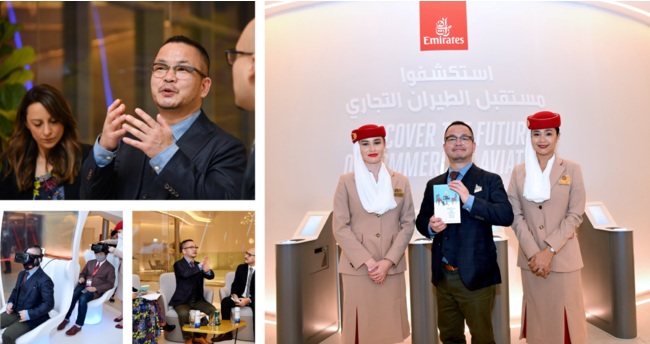 トークセッション終了後、川口氏はエミレーツ館を見学し、未来の民間航空が50年後の2071年にどのような進化を遂げるか「タイムトラベル」を体験しました。持続可能な推進技術、先進的な複合材料でできた機体の実験、未来の航空機のモダンな客室などを体験しました。また、川口氏はドバイ国際博覧会の日本館も視察しました。
