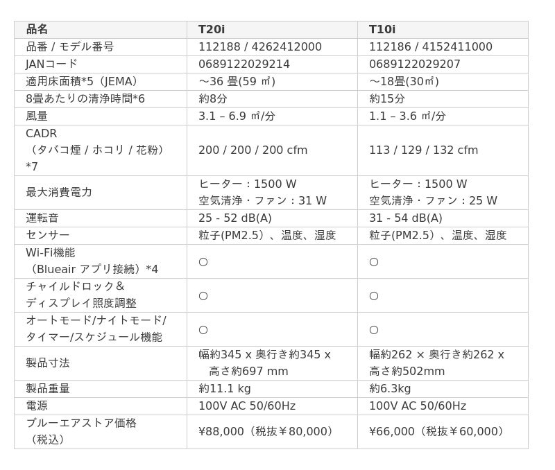 「ComfortPure(TM) 3-in-1 T20i 空気清浄機」