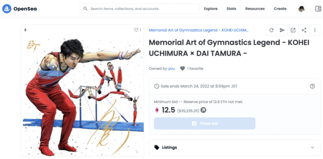 NFT to commemorate Kohei Uchimura's retirement is now on sale at OpenSea. To new challenges for further development and growth of the gymnastics world.