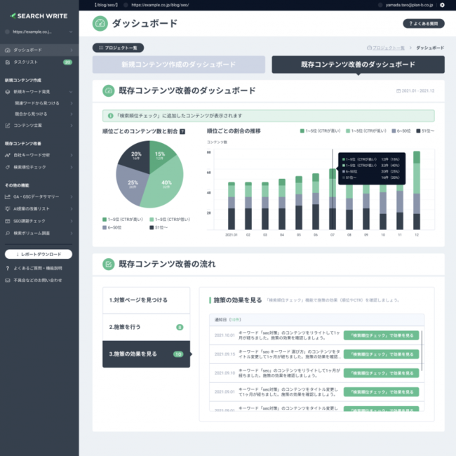 株式会社PLAN-B(東京都品川区、代表取締役:鳥居本真徳、以下当社)が提供するコンテンツSEOのインハウス化支援ツール「SEARCH WRITE(サーチライト)」にダッシュボードという新機能が追加されました。