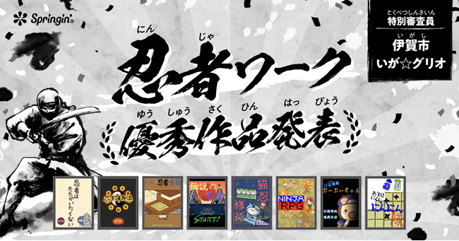 株式会社しくみデザイン(本社:福岡市博多区、代表取締役:中村俊介、以下「しくみデザイン」)は、自社で開発するプログラミング未経験でもゲームがつくれる創造的プログラミングアプリ「Springin’(スプリンギン)」を使って「忍者」をテーマにした作品を“忍者月間”である2月2日(水)から2月22日(火)まで募集。全国から寄せられた488点の応募作品の審査を行い、3月28日(月)に優秀賞含む受賞作品を発表いたしました。